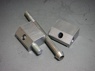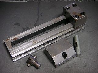 おお、なんか楽しくなってきました。さすが鉄の塊、凄い存在感。2号機(どっちだ)に、早速SS400の塊を銜えてみました。ロックボルトを軽く締め付けると、おおぅ・・・