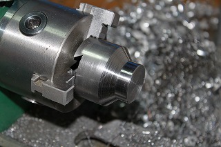 メス側を旋盤に咥え、外形加工です。こういったテーパーもCNCであれば簡単に加工できてしまいます。