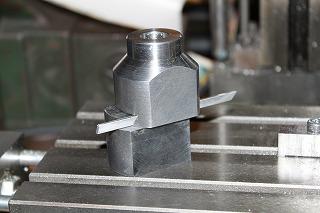 私にしては珍しく、CNCではなく手動で切削してみました。10mm超硬エンドミルのピンカドが欠けてしまったものを、生きている側面の刃を使用して一発カット。最後にベルトサンダーでヘアライン仕上げに(手抜き)。