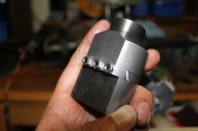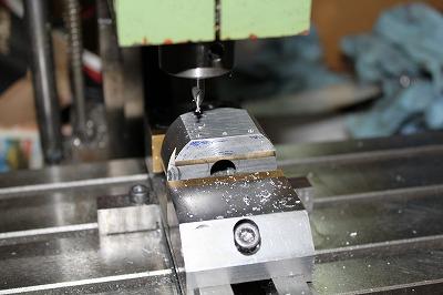 スライドは3本の4mmイモネジで固定します。左右が与圧の調整、中央がロック用。ケガいて穴あけ・・・ではなく、CNCをプロッタ代わりに使用して正確に位置決めします。ズレるとかっこ悪いですからね。