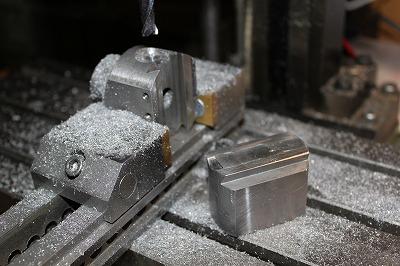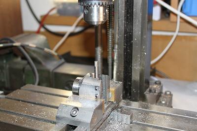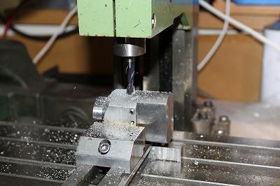 オスとメスをかみ合わせて固定、8mmのエンドミルをR5で回して18mmの穴を開けます。