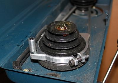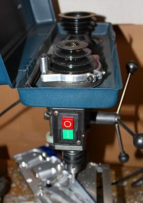 ハンドルは12mmの2017丸棒です。フリーで動くようになっています。主軸プーリーにがっちり結合されており、適切な寸法(偶然?)によりベルトカバーを閉めることもできます。