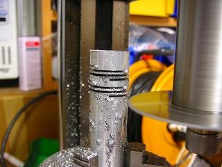 まずはゆっくり、F25程度の速度(Jogで送りました)でごりごりっとスリットを入れ・・・。
