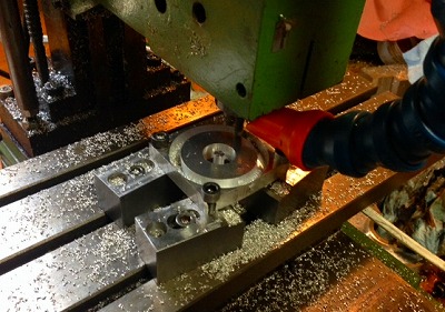 最終的な仕上げは旋盤で行います、あくまでもフライスは荒削り。1mmほど切りシロを残して削り出しましょうか。