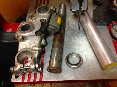 また、ヤマハのステムシャフトはかなり深くまで溶接されていることが多く(小排気量車で顕著)、溶接を削りはがす手間を考えるとステムシャフトを削り出して打ち込む方が得策です。