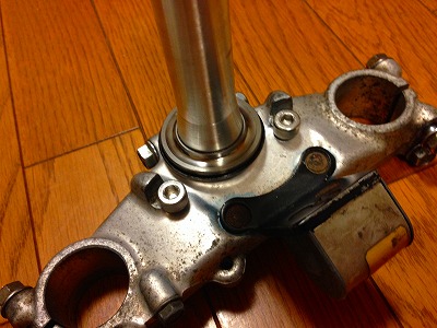どんなバイクもステムシャフトの構造はほとんど同じ、下から