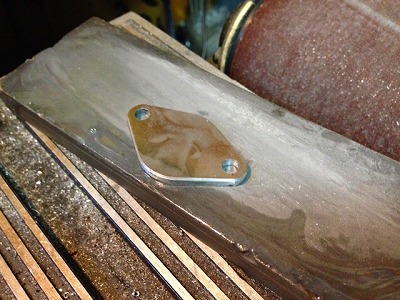 切り飛ばしたあとのバリは、ベルトサンダーで仕上げます。