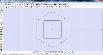 CADを使えば正方形も正六角形も簡単に書けますから、それを重ねあわせてさらにR取りで半径1mmのRを取ります。