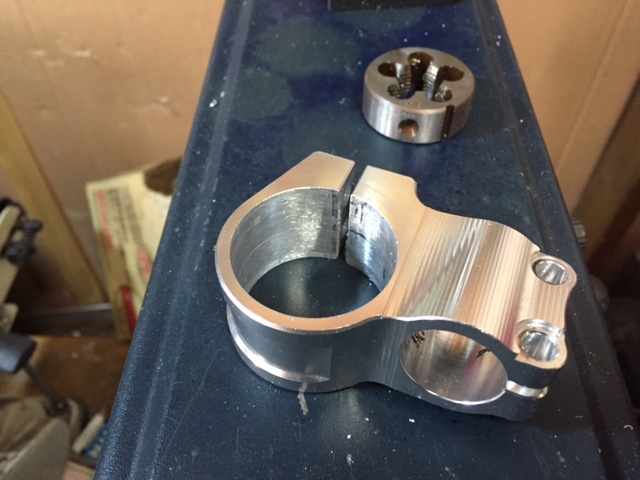 まずはクランプ部の締め代に適当な厚みのプレート(私はCリングを使いました)を挟み込んでボルトで締め、その状態でC軸にセット。
